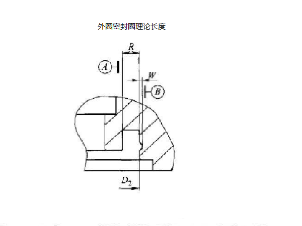 外圈密封圈理論長度為L2= [ (D2 +2W) + (D2-2R)] / (2π)